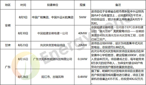 8月全國(guó)光伏并網(wǎng)工程一覽