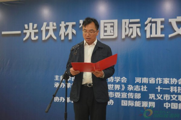 3月29日下午四點(diǎn),由中外散文詩(shī)學(xué)會(huì)和河南省作協(xié)主辦,《散文詩(shī)世界》雜志社、十一科技和市委宣傳部、市文聯(lián)等單位承辦,市作協(xié)、國(guó)際能源網(wǎng)、中國(guó)能源網(wǎng)協(xié)辦的鞏義—光伏杯國(guó)際征文大賽正式啟動(dòng)。十一科技董事長(zhǎng)