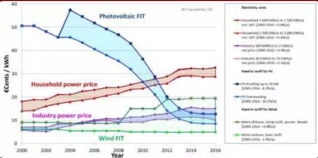 同時(shí)我們看到,隨著光伏產(chǎn)業(yè)度電成本的下降,海外的市場(chǎng)需求逐漸放量,存在著巨大的市場(chǎng)潛力和機(jī)會(huì)。今天兔子君就為大家列舉下德國光伏的降價(jià)歷史,并簡要闡釋海外光伏電站的未來市場(chǎng)空間。