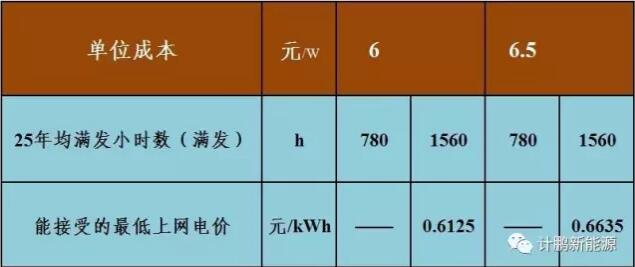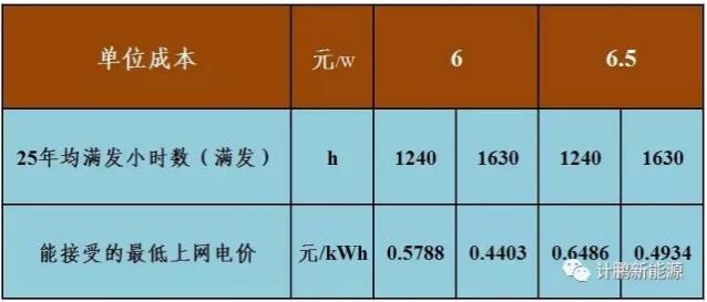 當(dāng)光伏單位投資在6元/W時,保持項目正常的8%的收益率,在資源最好的條件下,上網(wǎng)電價在0.6125元/kWh以上,當(dāng)光伏單位投資在6.5元/W時,保持項目正常的8%的收益率,在資源最好的條件下,上網(wǎng)電價在0.6635元/kWh以上。