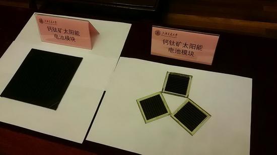 鈣鈦礦太陽能電池模塊  這篇論文題為“A solvent-and-vacuum-free route to large-area perovskite films for efficient solar modules” (無溶劑免真空條件下的大面積鈣鈦礦薄膜和高效太陽能電池模塊制備),上海交大材料科學(xué)與工程學(xué)院研究員楊旭東和教授韓禮元為共同通訊作者,陳漢、葉飛、唐文濤為共同第一作者。