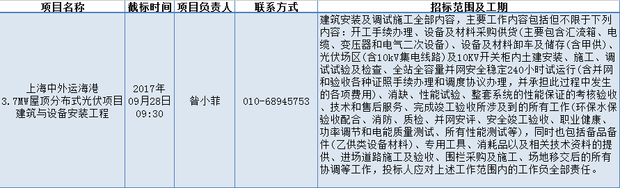 中廣核近日光伏項目招標(biāo)情況,涉及集中式逆變器、組串式逆變器、光伏組件、光伏支架、EPC總承包工程等,現(xiàn)將基本信息整理如下:相關(guān)供應(yīng)商資質(zhì)要求詳見下文:一、中廣核洋浦港光伏項目組串式逆變器成套設(shè)備投標(biāo)人