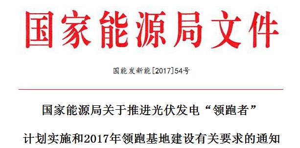 國家能源局關(guān)于推進光伏發(fā)電“領(lǐng)跑者” 計劃實施和2017年領(lǐng)跑基地建設(shè)有關(guān)要求的通知