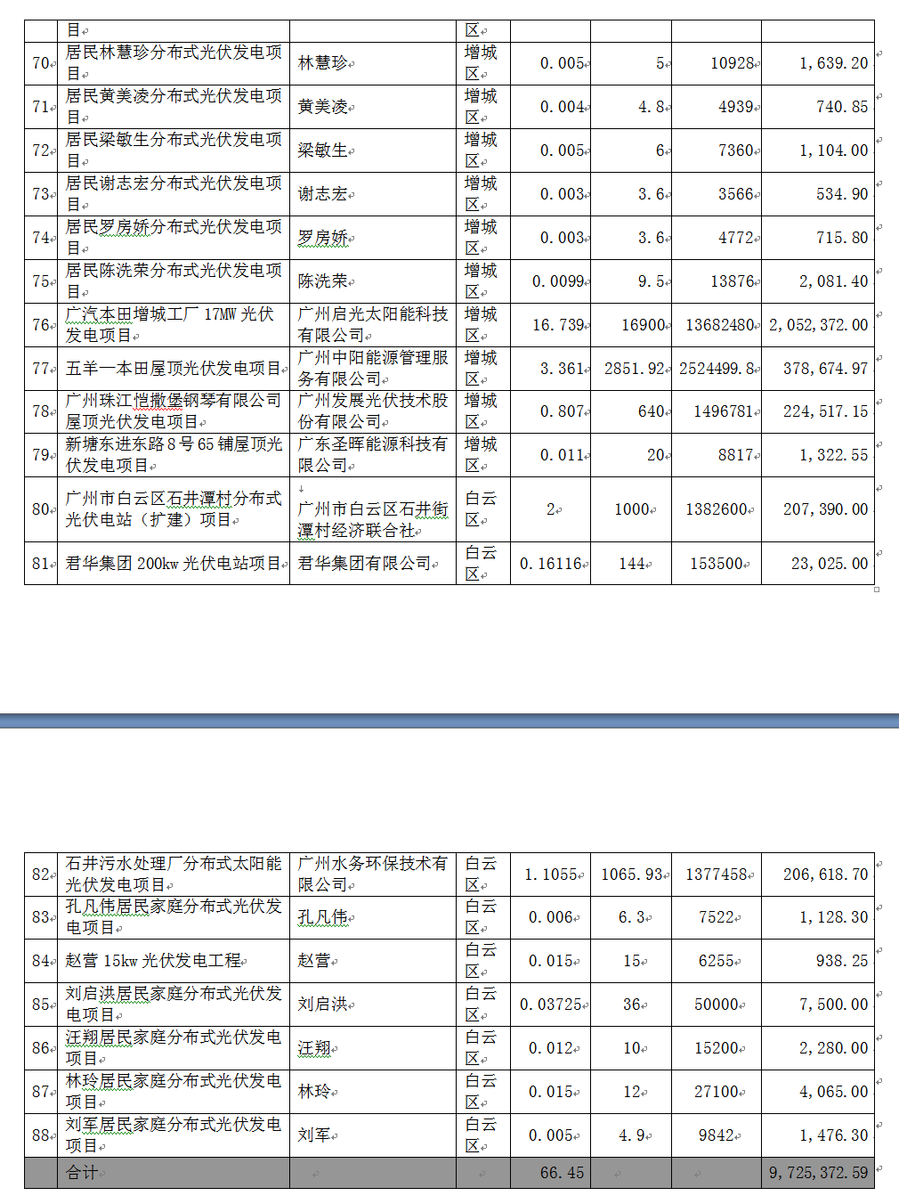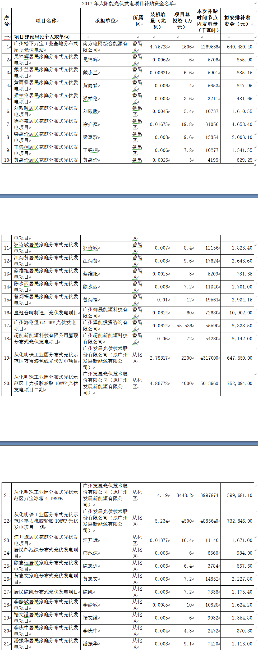 廣州2017年光伏發(fā)電項(xiàng)目補(bǔ)貼資金名單