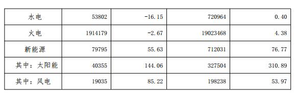 (一)發(fā)電量情況。9月份當(dāng)月,全省發(fā)電量204.78億千瓦時,同比減少1.65%。其中水電5.38億千瓦時,同比減少16.15%;火電191.42億千瓦時,同比減少2.67%;新能源7.98億千瓦時,同比增長55.63%。
