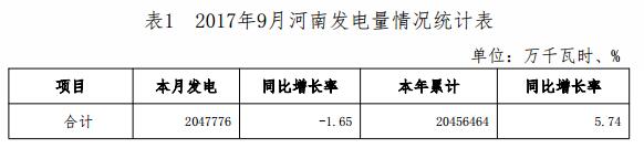 2017年9月河南省電力供需情況通報