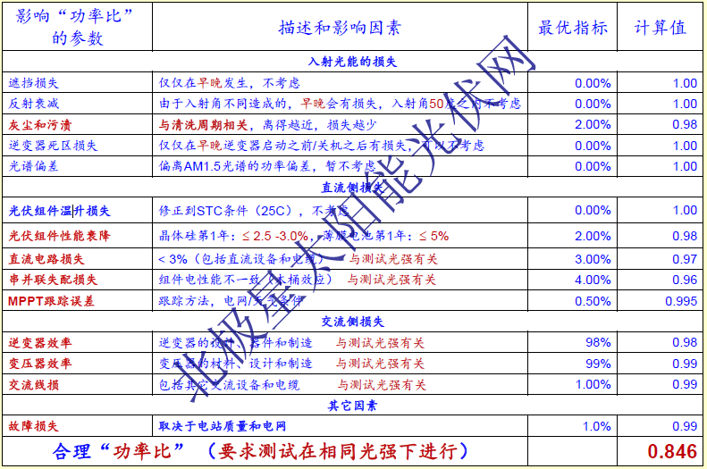 3)功率比中包括了:光伏組件功率衰降,積塵損失,光譜損失,反射損失,失配損失,交直流線損,逆變器效率,變壓器效率,即時(shí)的故障損失。不包括:溫升損失,逆變器死區(qū)損失,早晚遮擋,棄光,停機(jī)等與時(shí)間相關(guān)的損失;