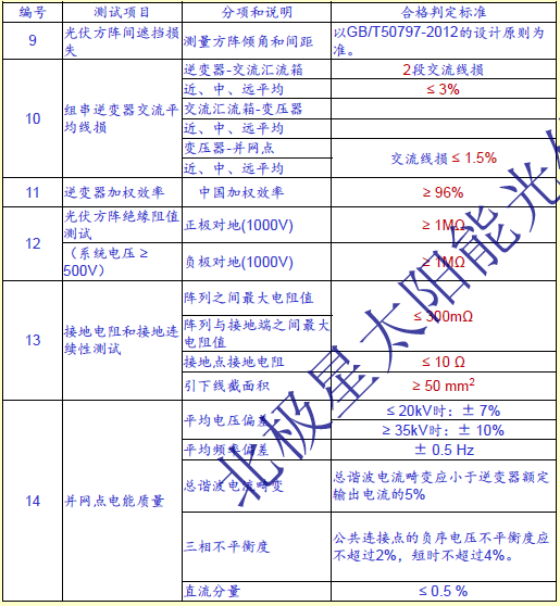 電站測試項(xiàng)目和判定指標(biāo)
