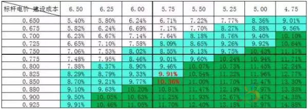因業(yè)內(nèi)大部分電站投資商以融資前稅后內(nèi)部收益率達(dá)到8-8.5%作為決策依據(jù),少部分融資成本高的投資商,甚至要求10%以上的收益率作為投資依據(jù)。