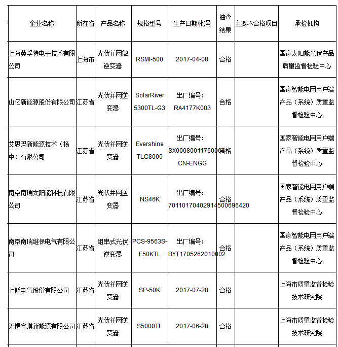 本次共抽查了上海、江蘇、浙江、安徽、廣東等5個(gè)省、直轄市27家企業(yè)生產(chǎn)的27批次光伏并網(wǎng)逆變器產(chǎn)品。