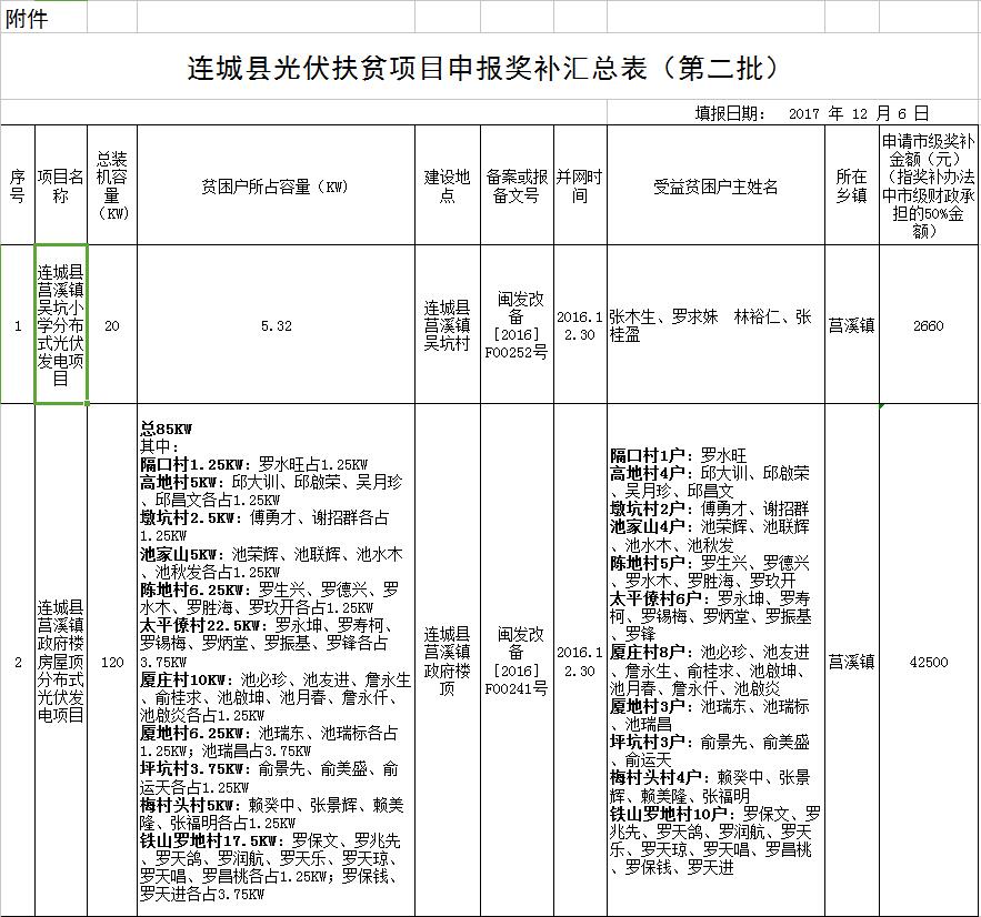 附件:連城縣光伏扶貧項(xiàng)目申報(bào)獎(jiǎng)補(bǔ)匯總表(第二批)