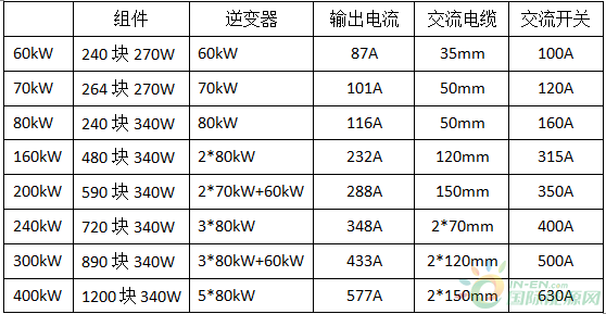 4、常用村級光伏扶貧系統(tǒng)配置: