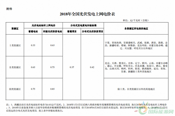 文件明確國(guó)家2018年光伏發(fā)電價(jià)格