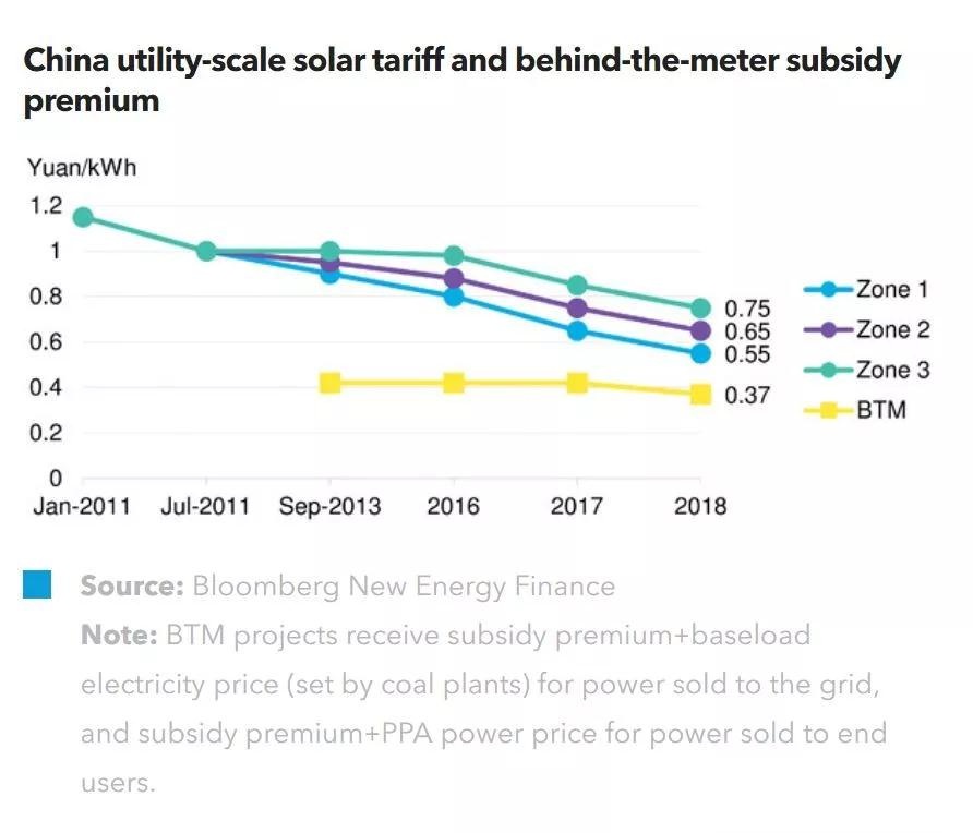 中國(guó)國(guó)家發(fā)改委在2017年12月21日宣布,從2018年開(kāi)始,地面光伏電站的標(biāo)桿電價(jià)下調(diào)12%-15%,“自發(fā)自用,余量上網(wǎng)”光伏容量的補(bǔ)貼標(biāo)準(zhǔn)下調(diào)12%。彭博新能源財(cái)經(jīng)預(yù)計(jì),這種調(diào)整將給地面光伏電站帶來(lái)更多壓力,但同時(shí)將造福分布式光伏發(fā)電“自發(fā)自用,余量上網(wǎng)”模式的發(fā)展。
