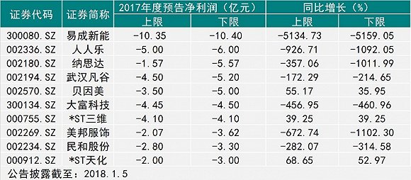 易成新能預(yù)告2017年度凈利潤預(yù)虧10.35億元至10.40億元,截至1月5日,該公司成為滬深兩市的“虧損王”。2016年,易成新能盈利2055.72萬元。