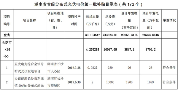 附件:湖南省省級分布式光伏電價第一批補(bǔ)貼目錄表