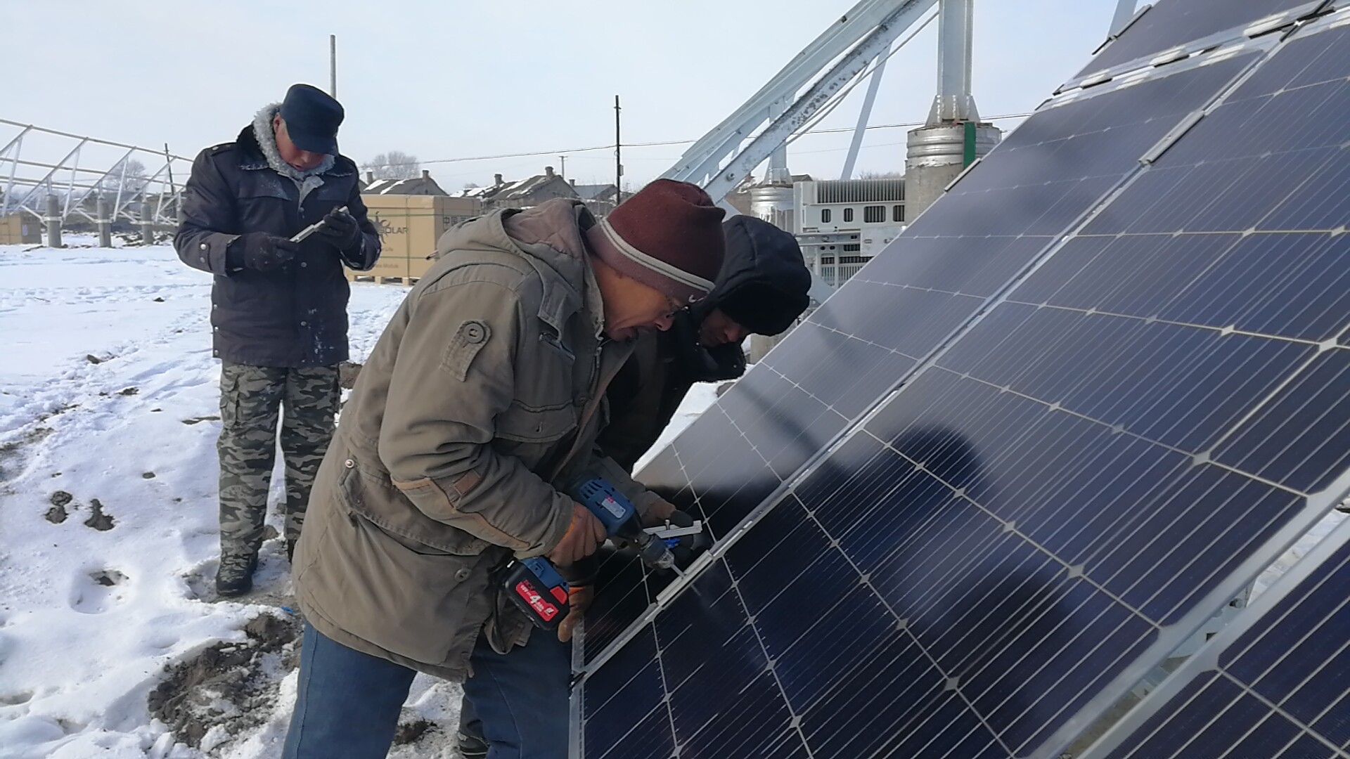 天下無(wú)難事,只怕有心人。開(kāi)工之初,面對(duì)資金緊張、場(chǎng)地分散、地質(zhì)條件復(fù)雜、冬季施工條件差等棘手問(wèn)題,施工人員不畏艱險(xiǎn),敢為人先,務(wù)實(shí)擔(dān)責(zé),苦干實(shí)干,處處體現(xiàn)出一種戰(zhàn)天斗地,攻堅(jiān)克難,不畏嚴(yán)寒的精氣神。在施工過(guò)程中,每一名光伏項(xiàng)目的參與者都在用一種勇于擔(dān)當(dāng)、肯于奉獻(xiàn)、盡職盡責(zé)、眾志成城的工作狀態(tài),詮釋著脫貧路上攻城拔寨,服務(wù)群眾中舍我其誰(shuí)的昂揚(yáng)斗志。施工過(guò)程中,陰雨綿綿、寒風(fēng)刺骨、滴水成冰,但戰(zhàn)斗在建設(shè)一線的干部群眾和各施工項(xiàng)目單位人員披星戴月,爬冰臥雪引孔打樁,支架安板,埋纜布線,接網(wǎng)調(diào)試,與旭日晨曦一同上崗,伴晚霞余暉收工回家。