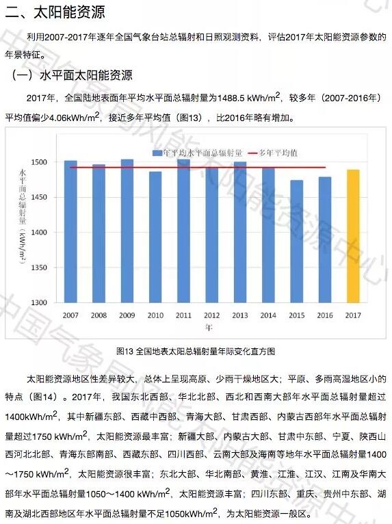 近日,我國風(fēng)能太陽能資源年景公報發(fā)布,北極星太陽能光伏網(wǎng)節(jié)選太陽能資源年景公報,以饗讀者。原標(biāo)題:中國風(fēng)能太陽能資源年景公報