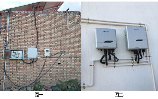 筆者走訪調(diào)研中發(fā)現(xiàn),組件安裝不規(guī)范以及交直流線纜走線凌亂的情況較常見,尤其是在早期實施的扶貧項目中。如圖一,此電站安裝設(shè)計及施工不規(guī)范,會為電站的長期運營和收益帶來了很大的質(zhì)量隱患。圖二為扶貧項目實施后期所建設(shè)的一些比較規(guī)范的組件安裝,無論是在走線還是穿管都更加合理了。