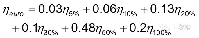 美國加州能源協(xié)會(huì)要求,按照不同功率點(diǎn)效率根據(jù)加權(quán)公式計(jì)算,同時(shí)考慮直流電壓對(duì)效率的影響(額定、最大、最小三種輸入電壓)。