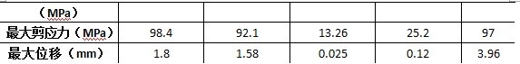 其次對整體系統(tǒng)進(jìn)行受力分析,主要分析其最大應(yīng)力,最大剪應(yīng)力以及最大變形量,并與采用型材的相應(yīng)的許用應(yīng)力進(jìn)行對比,最終可以得到整體系統(tǒng)滿足強(qiáng)度和剛度要求。
