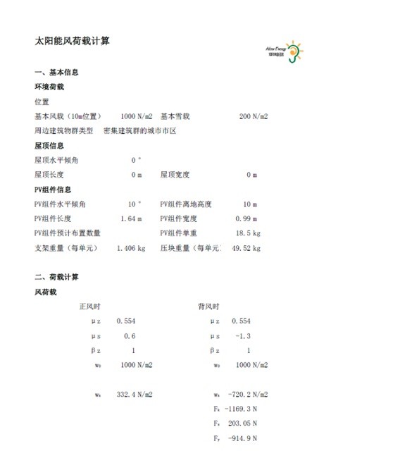 逆風(fēng)時(shí)作用在垂直作用在PV組件上的風(fēng)荷載標(biāo)準(zhǔn)值為Wk=-748.2N/㎡
