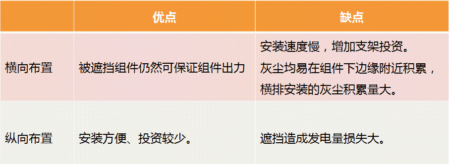 組件采用橫向、豎向布置的優(yōu)缺點(diǎn)如下表。