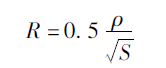 接地網(wǎng)的接地電阻簡化計算公式為:
