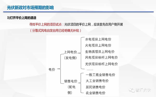 自發(fā)自用、余電上網(wǎng):10GW的規(guī)模指標(biāo),531之后并網(wǎng)無國家補(bǔ)貼(地方政府想辦法?),要參與競價(jià)