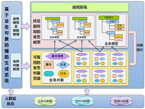 在基于業(yè)務(wù)對(duì)象的應(yīng)用系統(tǒng)建設(shè)過(guò)程中,“資源化”的思路與方法貫穿始終。一方面,在元數(shù)據(jù)體系的支撐下,業(yè)務(wù)對(duì)象通過(guò)元數(shù)據(jù)體系進(jìn)行統(tǒng)一的組織和管理,使得用戶可以高效、便捷的復(fù)用,快速創(chuàng)建針對(duì)特定業(yè)務(wù)需要的功能;另一方面,隨著基于業(yè)務(wù)對(duì)象的應(yīng)用系統(tǒng)建設(shè)的不斷增多,業(yè)務(wù)對(duì)象會(huì)在數(shù)量、質(zhì)量上不斷積累和完善,使得在應(yīng)用系統(tǒng)的建設(shè)過(guò)程中可復(fù)用的資源也更為豐富,使得系統(tǒng)的建設(shè)更加規(guī)范、可擴(kuò)展以及可管理。從而支持和促進(jìn)整體業(yè)務(wù)體系在實(shí)際的業(yè)務(wù)過(guò)程中不斷的向前發(fā)展和動(dòng)態(tài)演進(jìn),具有更長(zhǎng)久的業(yè)務(wù)生命力。