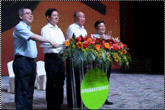 (從左向右)國家發(fā)展和改革委員會應(yīng)對氣候變化司司長蘇偉、廣東省委常委、常務(wù)副省長徐少華、國家發(fā)展和改革委員會副主任解振華和深圳市委