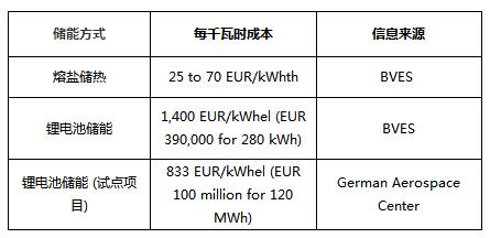 BVES最新研究數(shù)據(jù):熔鹽儲熱與鋰電池儲能成本對比