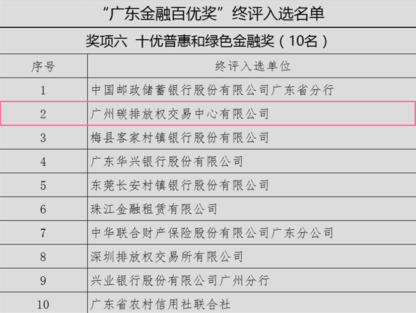 廣州碳排放權(quán)交易所入選廣東十優(yōu)普惠和綠色金融獎(jiǎng)