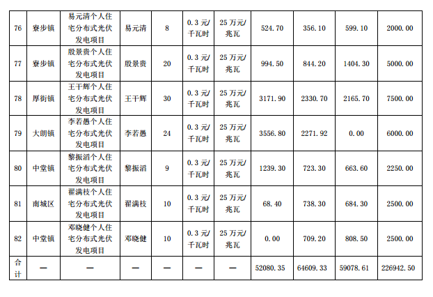 廣東東莞市前四批分布式光伏項(xiàng)目補(bǔ)助名單(2016-2017Q1)