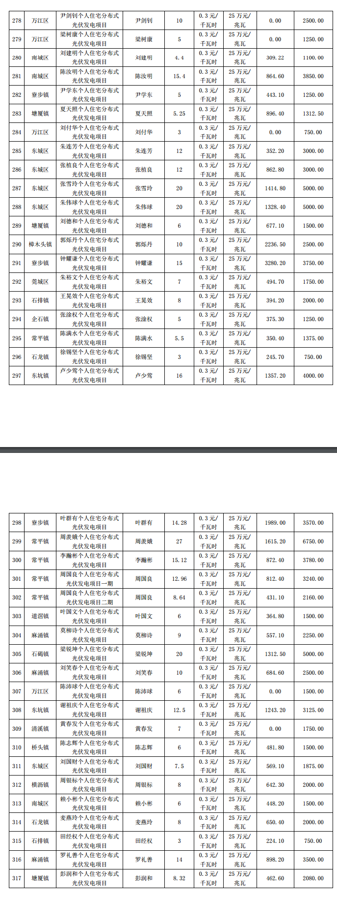 廣東東莞市前四批分布式光伏項目補助名單(2016-2017Q1)