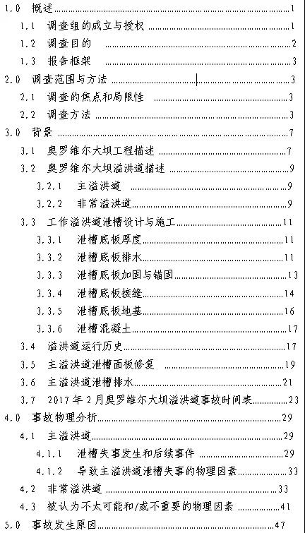 《奧羅維爾大壩溢洪道事故獨(dú)立調(diào)查組報(bào)告》主要結(jié)論