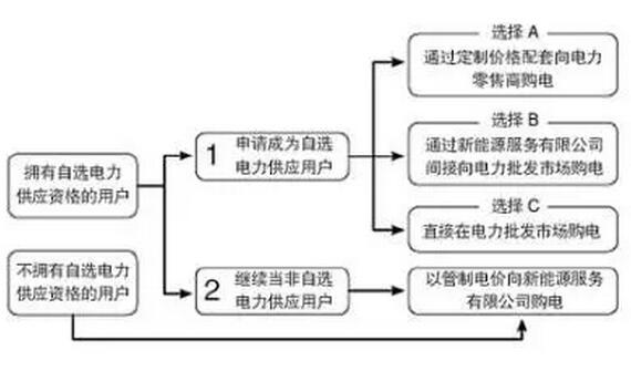目前,新加坡電力零售市場(chǎng)仍處于部分放開的狀態(tài)。根據(jù)年用電量,新加坡的電力用戶被分為擁有自選電力供應(yīng)資格的用戶和不擁有自選電力供應(yīng)資格的用戶。前者可以通過定制價(jià)格配套向電力零售商購(gòu)電,或者選擇通過新能源服務(wù)有限公司(傳統(tǒng)供電公司)間接向電力批發(fā)市場(chǎng)購(gòu)電,或者直接在電力批發(fā)市場(chǎng)購(gòu)電,或者與后者一樣,繼續(xù)以管制定價(jià)向新能源服務(wù)有限公司購(gòu)電;而后者只能以管制定價(jià)向新能源服務(wù)有限公司購(gòu)電(見圖1)。