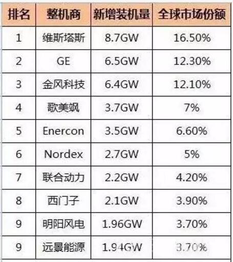 (2016年全球陸上風(fēng)電整機(jī)商TOP10)