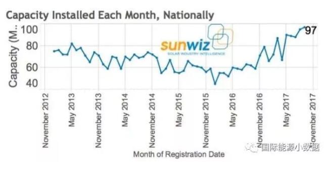 到2017年9月澳大利亞新增屋頂光伏(含居民、商業(yè))97兆瓦,今年前9個(gè)月新增780兆瓦,預(yù)計(jì)2017年全年屋頂光伏裝機(jī)超過1吉瓦。