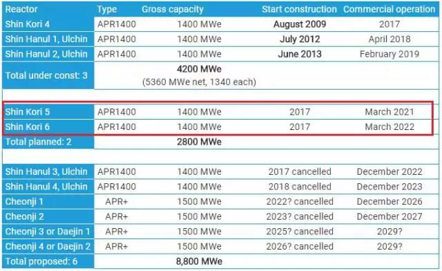 ▲韓國正在建設(shè)或計劃建造的反應(yīng)堆(數(shù)據(jù)來自WNA)