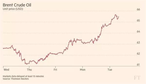 第二日國際原油基準布倫特原油早盤上漲,達到每桶65.70美元的高點,上漲1.6%,然后回落至65.33美元,上漲0.9%,創(chuàng)下自上個交易日以來的最高點。