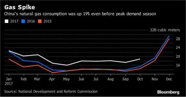 “煤改氣”拉動了中國天然氣需求的迅猛增長。中國能源管理局最近在一份聲明中表示,中國天然氣短缺天然氣4000萬立方米。公開數(shù)據(jù)顯示,1日,有公司液化天然氣(LNG)的掛牌價創(chuàng)出每噸9400元歷史新高,另有公司的LNG掛牌價比11月30日猛漲了每噸1400元。此外,11月中旬以來,天然氣價格上調(diào)幅度約10%,個別地區(qū)上調(diào)幅度達15%。