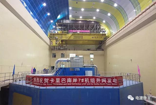 ▲卡里巴南岸水電站廠房7#機組并網(wǎng)發(fā)電