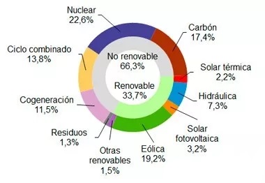 西班牙光熱發(fā)電占比2.2% 新能源合計33.7%