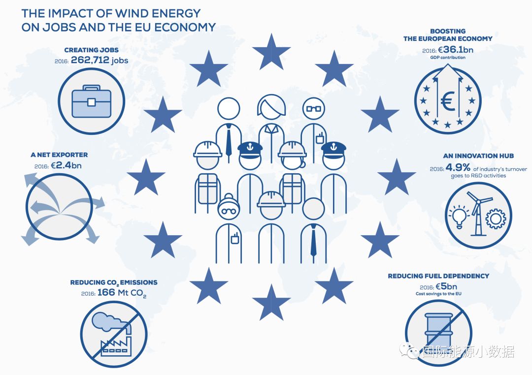 根據(jù)德勤的統(tǒng)計(jì)數(shù)據(jù),2017年6月底歐盟風(fēng)電裝機(jī)達(dá)到160吉瓦,2016年全年發(fā)電298TWh,占?xì)W盟電力消費(fèi)10 4%。2016年到歐盟國(guó)家在風(fēng)電工業(yè)全職