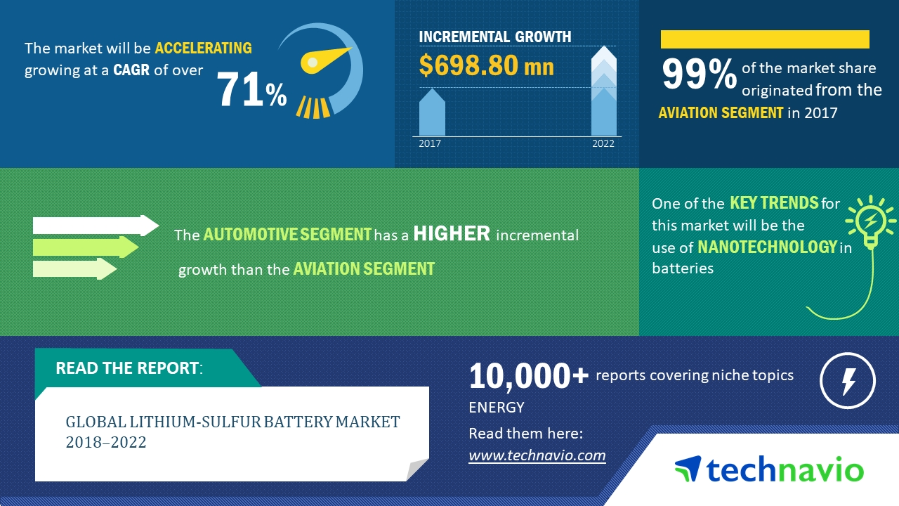2018-2022年全球鋰硫電池市場(chǎng)年復(fù)合增率超71%