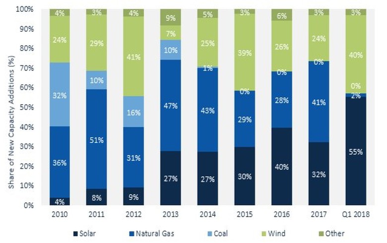 但是,根據(jù)GTM Research和美國(guó)太陽(yáng)能行業(yè)協(xié)會(huì)最新的美國(guó)太陽(yáng)能市場(chǎng)洞察報(bào)告,美國(guó)太陽(yáng)能行業(yè)第一季度新增加價(jià)值2.5吉瓦,年增長(zhǎng)13%,連續(xù)第十個(gè)季度超過(guò)2吉瓦。