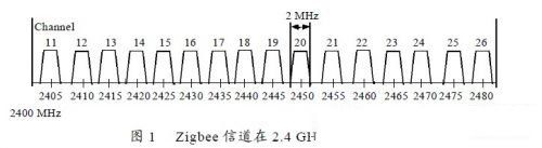 Zigbee 工作在工業(yè)科學(xué)醫(yī)療(ISM)頻段,定義了兩個物理層,即2.4 GHz頻段和868/915MHz 頻段物理層,而868MHz 和915 MHz 的ISM 頻段分別只在歐洲和北美有,所以其主要工作于全球范圍內(nèi)免許可證的2.4 GHz 的ISM 頻段。必然會與工作在該頻段的Wi-Fi 產(chǎn)生相互干擾。