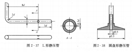 對于第二種情況,可以利用尺寸較小且具有一定形狀的測壓管插入流體中進行測量,圖2-37所示為I。形靜壓管,圖2-38所示為圓盤形靜壓管。