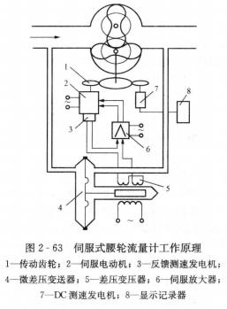 還有一種伺服式腰輪流量計(jì)(見圖2-63),在流量計(jì)工作時(shí),腰輪由伺服電動(dòng)機(jī)通過傳動(dòng)齒輪帶動(dòng),伺服電動(dòng)機(jī)轉(zhuǎn)動(dòng)的快慢,隨流體進(jìn),出口壓差的大小而改變。導(dǎo)壓管將出入口壓力引至差壓變送器以測量進(jìn)、出口壓差的變化,當(dāng)進(jìn)、出口壓差大于零時(shí),差壓變送器輸出信號(hào)經(jīng)放大后驅(qū)動(dòng)伺服電動(dòng)機(jī)帶動(dòng)腰輪加快旋轉(zhuǎn),使流量計(jì)排出較大流量的流體,從而使壓差趨近于零。這種近于無壓差的流量計(jì),可使泄漏量減小到最低限度,因而能實(shí)現(xiàn)小流量的高精度測量,而且測量誤差幾乎不受流體壓力、黏度和密度的影響。